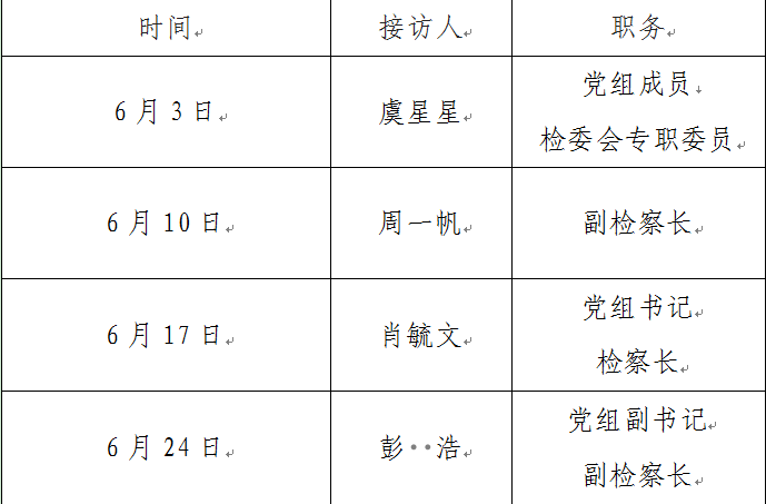 为认真贯彻习近平法治思想,全面生动展示新时代检察机关践行以人民为中心的发展思想情况,做好新时代信访工作,永新县人民检察院开展“12309检察长接访日”活动。现将2025年6月份检察长接访安排公告如下: