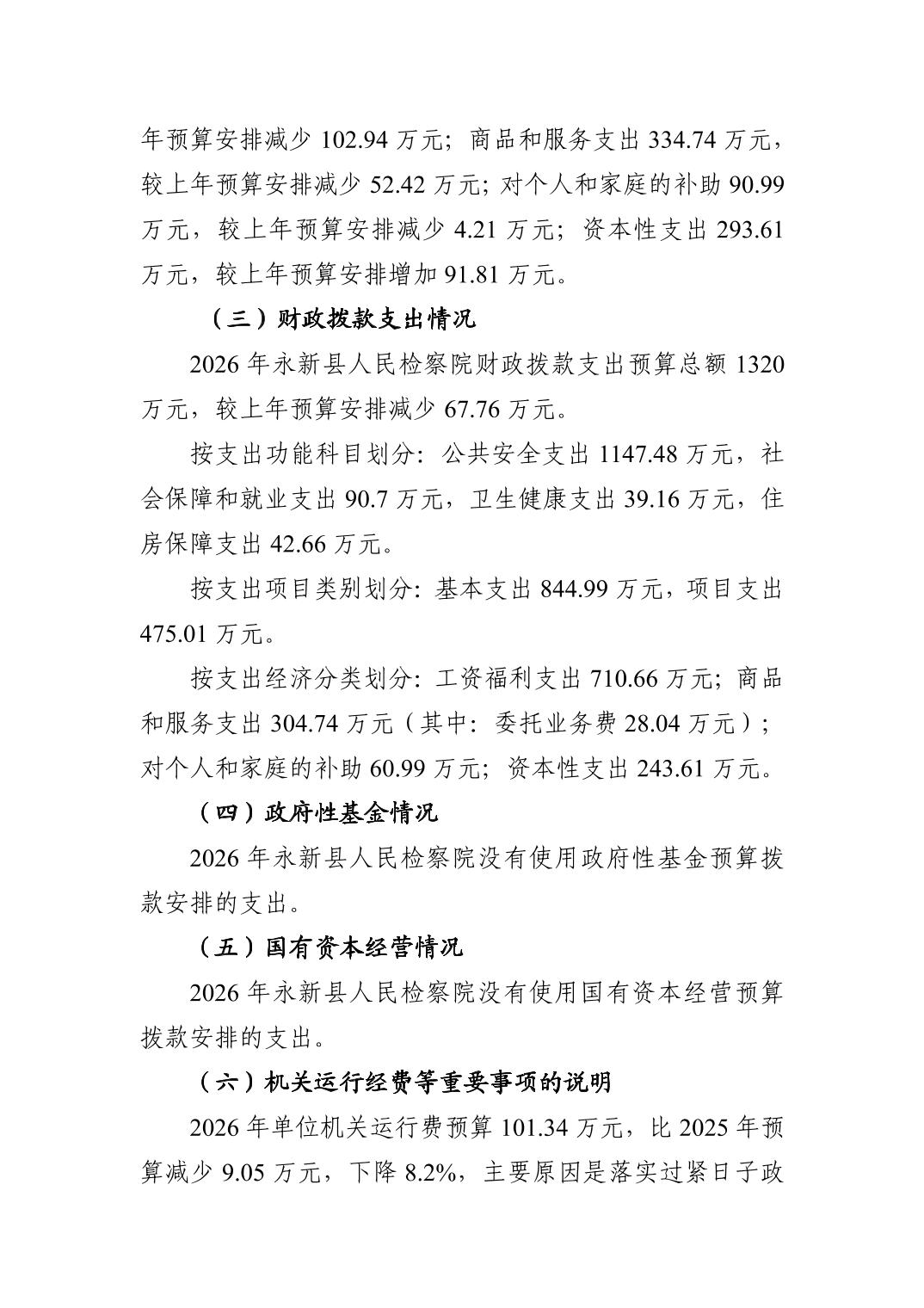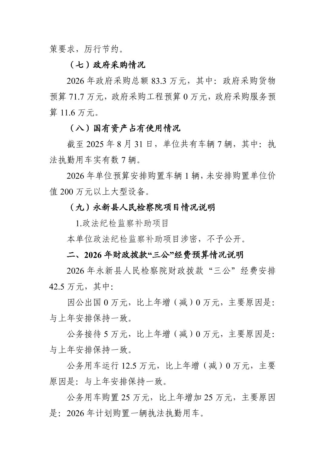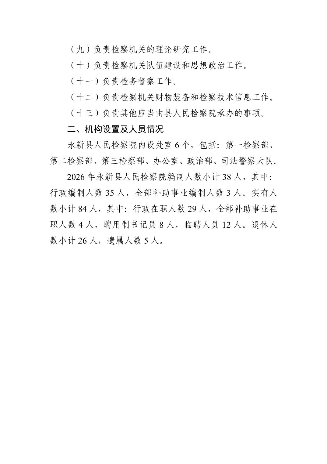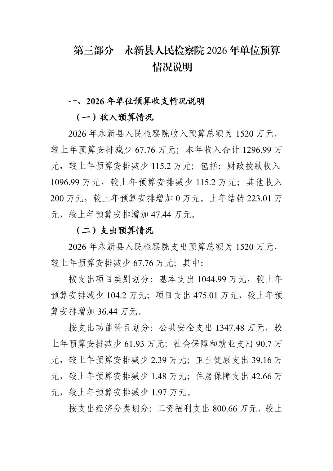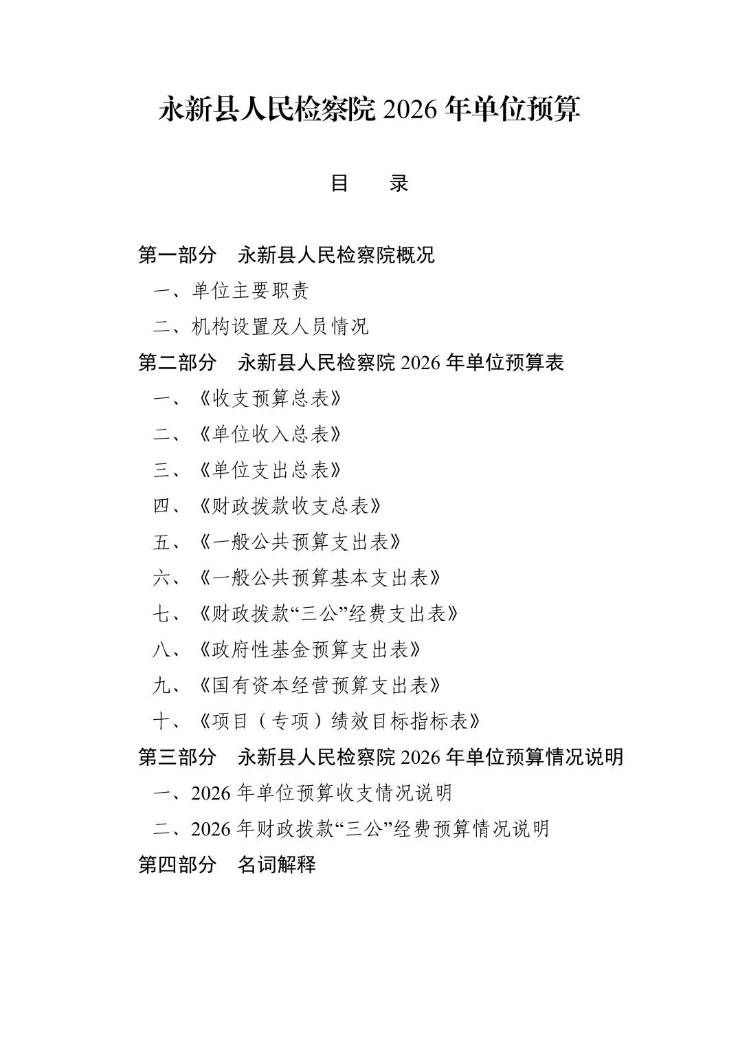 永新县人民检察院2026年单位预算公开