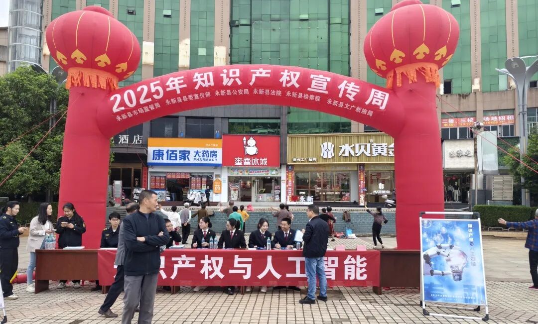 在第25个世界知识产权日来临之际,4月25日,永新县人民检察院会同县市场监督管理局、县公安局、县法院、县文广新旅局等多家单位,以“知识产权与人工智能”为主题,在县中心广场开展知识产权保护宣传活动。