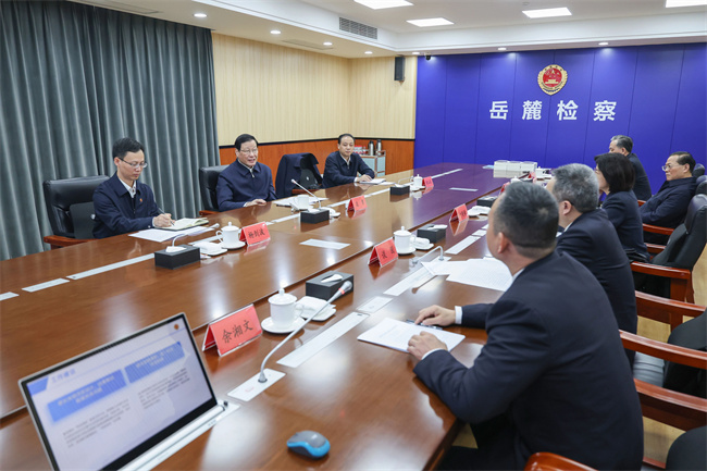 1月29日,最高人民检察院党组书记、检察长应勇率最高检调研组在长沙市岳麓区检察院调研。