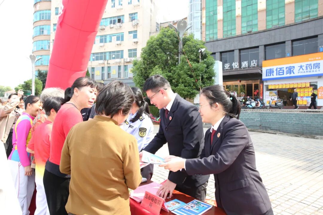 2024年4月24日,在第24个世界知识产权日来临之际,永新县人民检察院会同县市场监督管理局、公安局、法院、文广旅局等多家单位在县城中心广场开展知识产权保护宣传活动。我院干警正在为群众发放和讲解知识产权保护相关法治宣传资料。