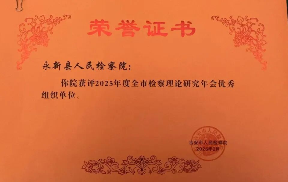 2月3日,在吉安市人民检察院召开的2025年度全市检察理论研究年会上,永新县人民检察院取得优异成绩!